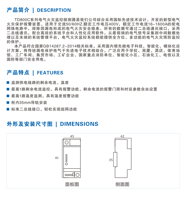 單路剩余電流式電氣火災監(jiān)控探測器
